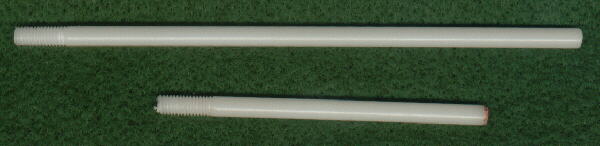 These are the delrin rods, which provide an adjustment for length and which keep the surface of the key from being gouged. They are 3/16" in diameter. The upper one is 5 1/4" long and the lower one is 3" long.